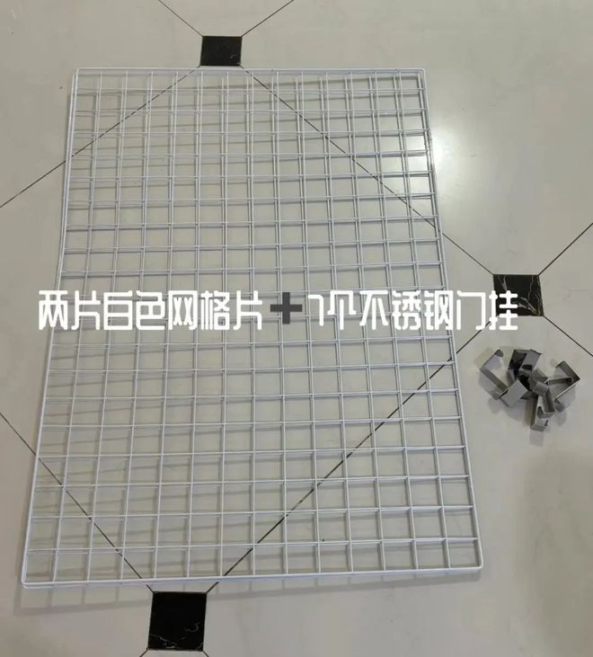 用无痕钉把铁网固定在墙上,再搭配一些小挂钩,就能把很多零碎的东西挂起来。